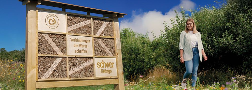 Our wildflower meadow is now home to a real symbol of sustainability and togetherness: a 2 x 2 meter wild bee nesting aid - a joint project that we realized together with Lebenshilfe Rottweil