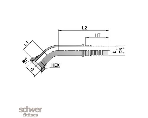 Depending on the hose type, corresponding fittings are offered in the common connection types such as DIN, JIC, BSP and SAE. The press fittings cover the entire hose range and are available for all common hoses such as 1-2SN, 1-2ST, 4SP, 4SH, stainless steel-coated PTFE hoses, spiral hoses, low-temperature hoses, Teflon hoses and thermoplastic hoses (hoses according to DIN 20021-20023). Connection fittings for corrugated stainless steel hoses round off the Schwer programme.